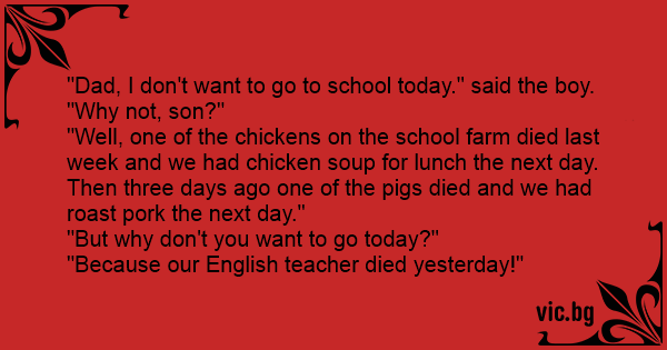 "Because our English teacher died yesterday!"