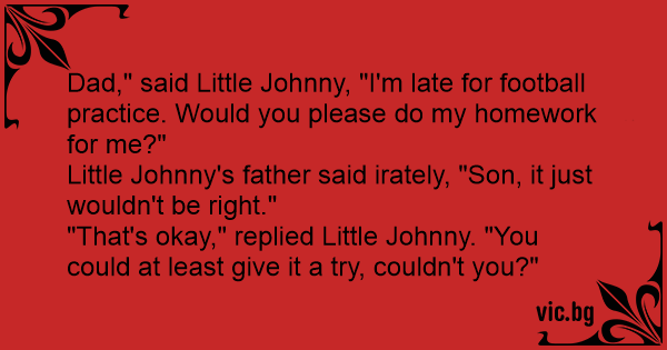 "That's okay," replied Little Johnny. "You could at least give it a try, couldn't you?"