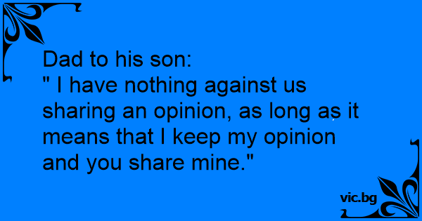 " I have nothing against us sharing an opinion, as long as it means that I keep my opinion and you share mine."