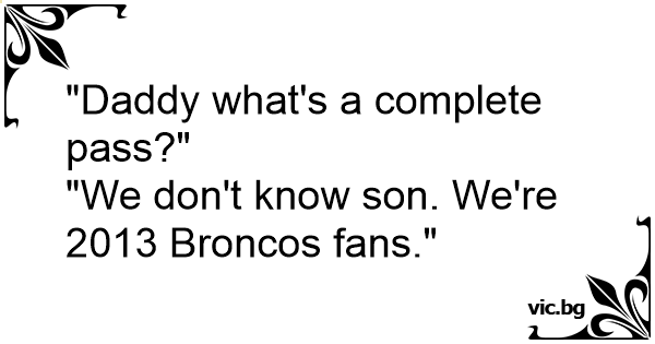 "We don't know son. We're 2013 Broncos fans."