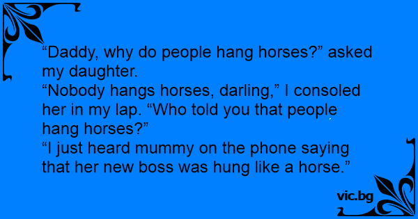 “I just heard mummy on the phone saying that her new boss was hung like a horse.”