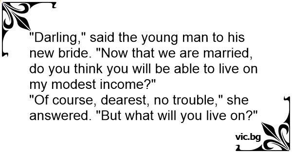 "Darling," said the young man to his new bride. "Now that we are married, do you think you will be able to live on my modest income?"