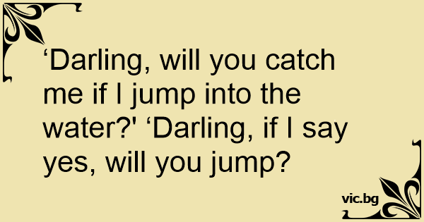 ‘Darling, will you catch me if I jump into the water?' ‘Darling, if I say yes, will you jump?