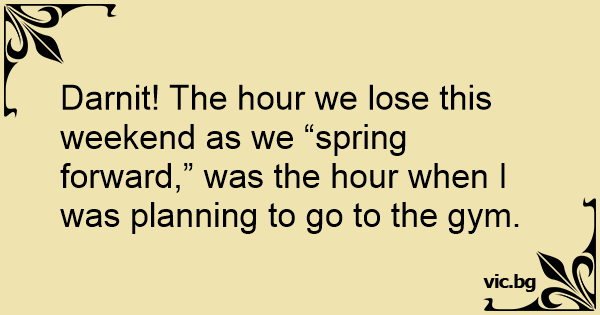 Darnit! The hour we lose this weekend as we “spring forward,” was the hour when I was planning to go to the gym.