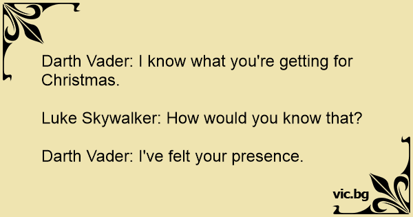 Darth Vader: I know what you're getting for Christmas.