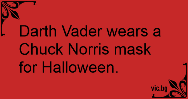 Darth Vader wears a Chuck Norris mask for Halloween.