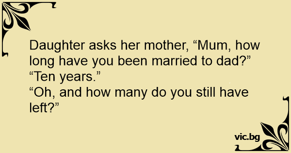 Daughter asks her mother, “Mum, how long have you been married to dad?”
