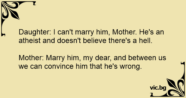 Daughter: I can't marry him, Mother. He's an atheist and doesn't believe there's a hеll.
