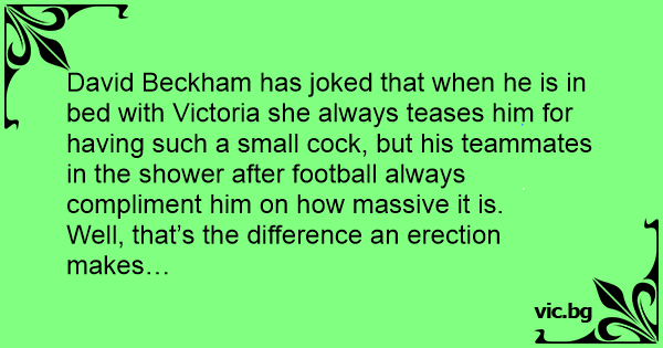 David Beckham has joked that when he is in bed with Victoria she always teases him for having such a small соск, but his teammates in the shower after football always compliment him on how massive it is.