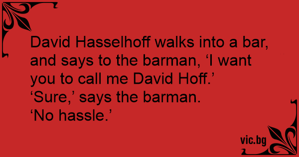 David Hasselhoff walks into a bar, and says to the barman, ‘I want you to call me David Hoff.’
