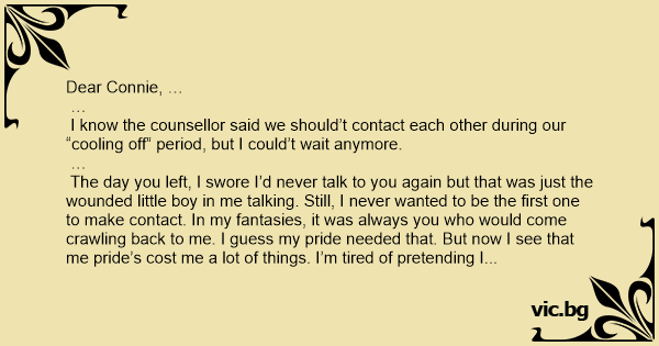 I know the counsellor said we should’t contact each other during our “cooling off” period, but I could’t wait anymore.