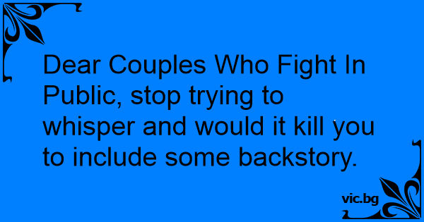 Dear Couples Who Fight In Public, stop trying to whisper and would it кill you to include some backstory.