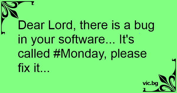 Dear Lord, there is a bug in your software... It's called #Monday, please fix it...