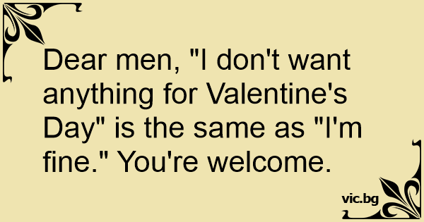 Dear men, "I don't want anything for Valentine's Day" is the same as "I'm fine." You're welcome.