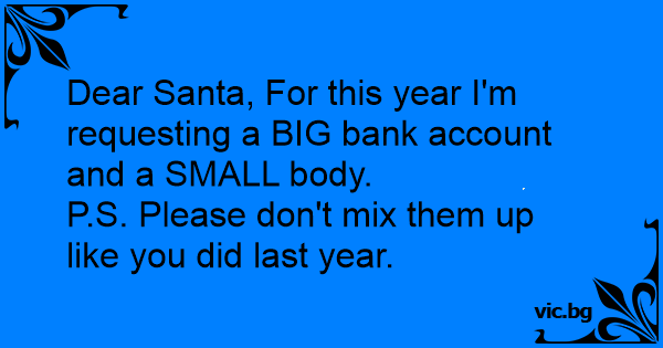 Dear Santa, For this year I'm requesting a BIG bank account and a SMALL body.