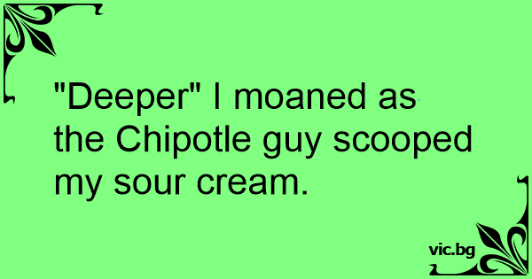 "Deeper" I moaned as the Chipotle guy scooped my sour cream.
