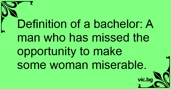 Definition of a bachelor: A man who has missed the opportunity to make some woman miserable.