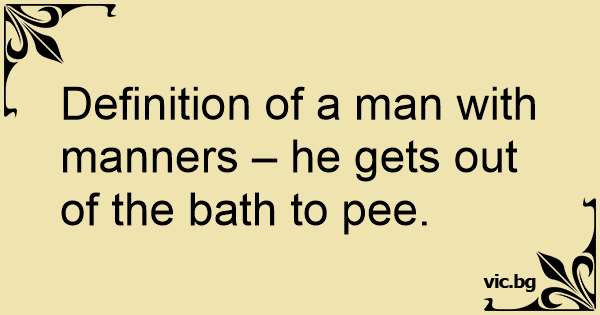 Definition of a man with manners – he gets out of the bath to рее.