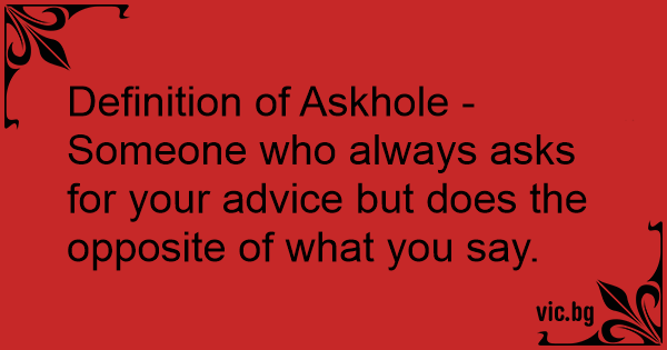 Definition of Askhole - Someone who always asks for your advice but does the opposite of what you say.