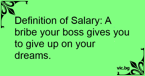 Definition of Salary: A bribe your boss gives you to give up on your dreams.