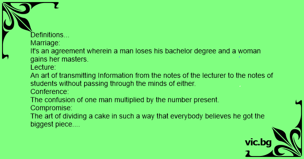 It's an agreement wherein a man loses his bachelor degree and a woman gains her masters.