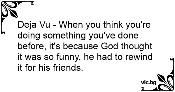Deja Vu - When you think you're doing something you've done before, it's because God thought it was so funny, he had to rewind it for his friends.