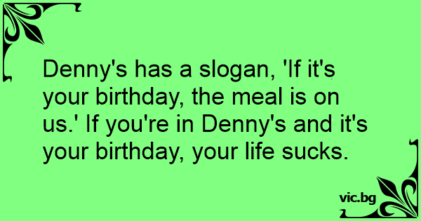 Denny's has a slogan, 'If it's your birthday, the meal is on us.' If you're in Denny's and it's your birthday, your life suскs.