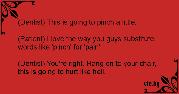 (Dentist) You're right. Hang on to your chair, this is going to hurt like hеll.