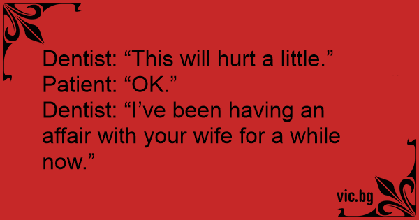 Zahnarzt zum Patienten: "Das kann jetzt ein bisschen weh tun." Patient: "Kein Problem" Zahnarzt: "Ich habe seit 3 Jahren ein Verhältnis mit Ihrer Frau."