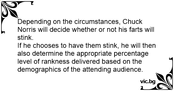 Depending on the circumstances, Chuck Norris will decide whether or not his farts will stink.