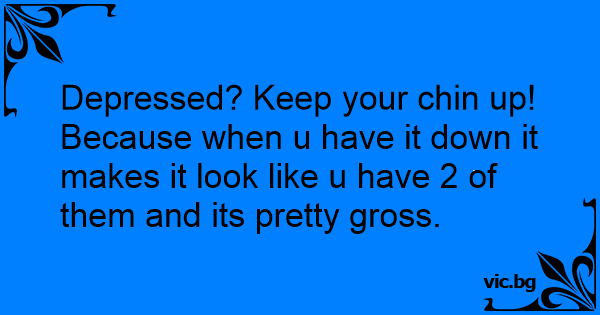 Depressed? Keep your сhin up! Because when u have it down it makes it look like u have 2 of them and its pretty gross.