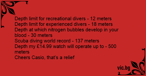 Depth my £14.99 watch will operate up to - 500 meters
