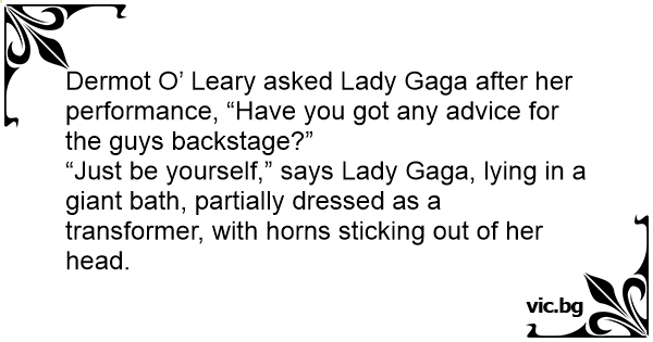 Dermot O’ Leary asked Lady Gaga after her performance, “Have you got any advice for the guys backstage?”