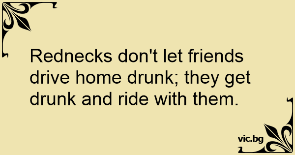 Rednecks don't let friends drive home drunк; they get drunк and ride with them.