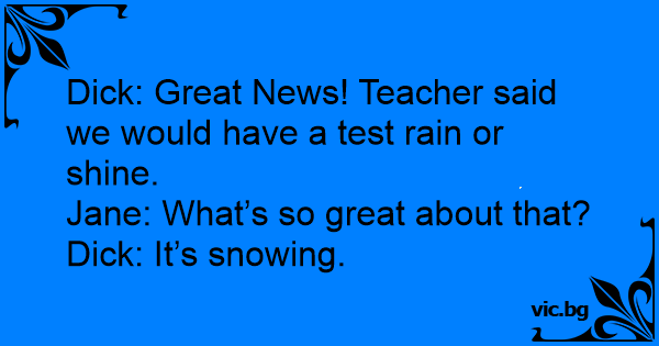 Diск: Great News! Teacher said we would have a test rain or shine.