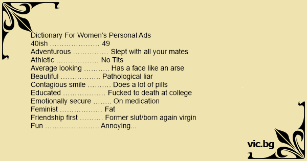 Dictionary For Women’s Personal Ads