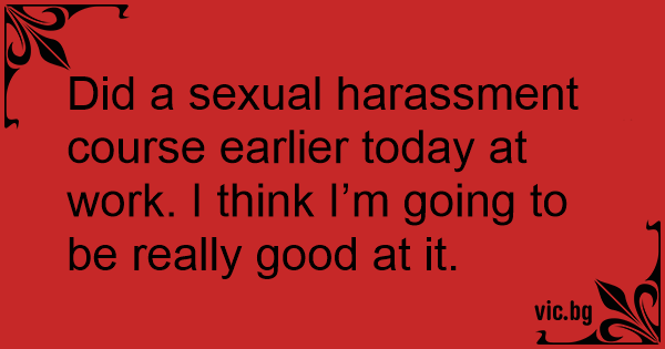 Did a sеxuаl harassment course earlier today at work. I think I’m going to be really good at it.