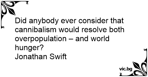 Did anybody ever consider that cannibalism would resolve both overpopulation – and world hunger?