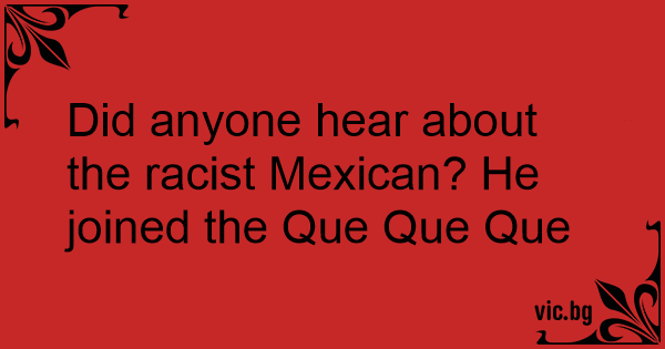 Did anyone hear about the racist Mexican? He joined the Que Que Que