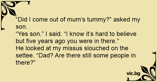 He looked at my missus slouched on the settee. “Dad? Are there still some people in there?”