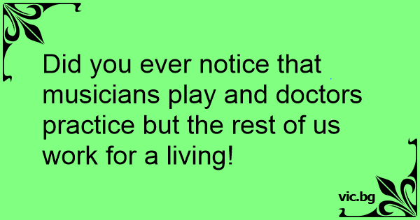 Did you ever notice that musicians play and doctors practice but the rest of us work for a living!