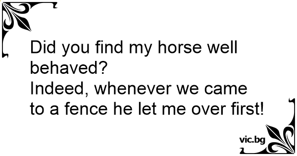 Did you find my horse well behaved? <br />Indeed, whenever we came to a fence he let me over first!