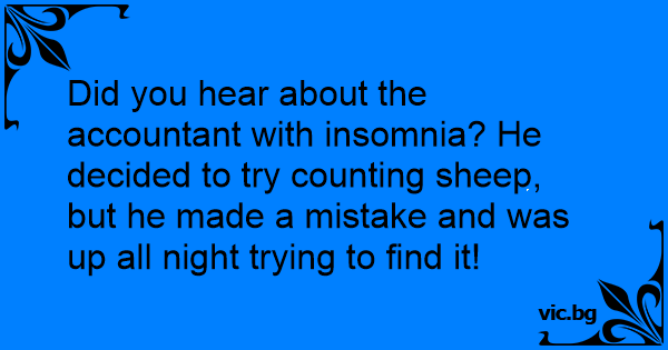 Did you hear about the accountant with insomnia? He decided to try counting sheep, but he made a mistake and was up all night trying to find it!