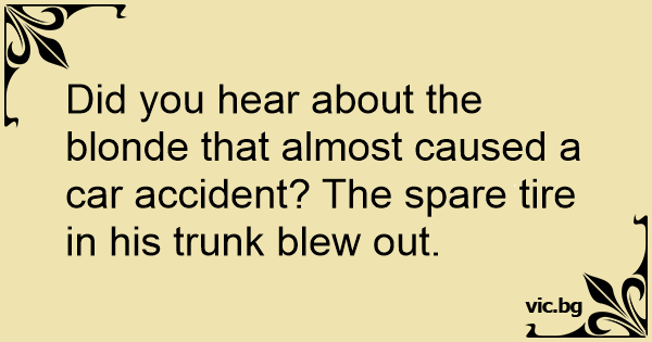 Did you hear about the blonde that almost caused a car accident? The spare tire in his trunk blew out.