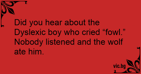 Did you hear about the Dyslexic boy who cried “fowl.”