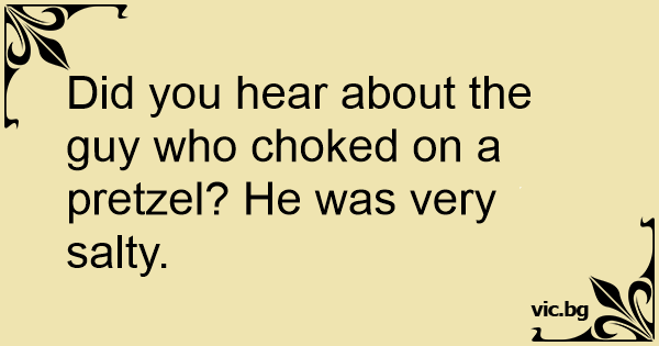 Did you hear about the guy who choked on a pretzel? He was very salty.