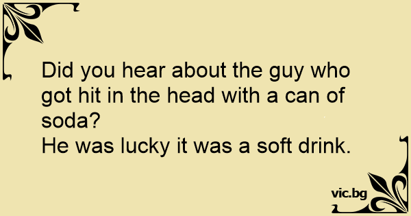 Did you hear about the guy who got hit in the head with a can of soda?