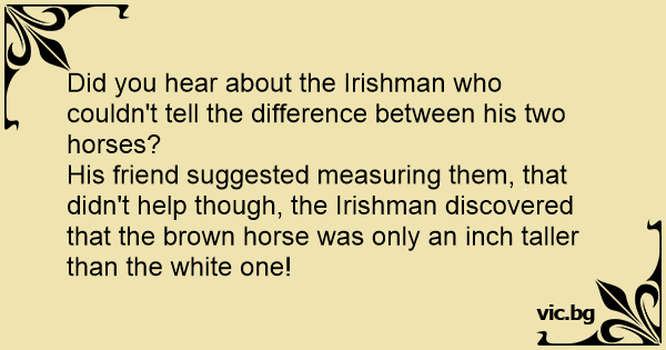 His friend suggested measuring them, that didn't help though, the Irishman discovered that the brown horse was only an inch taller than the white one!
