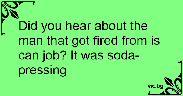 Did you hear about the man that got fired from is can job? It was soda-pressing
