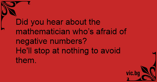Did you hear about the mathematician who’s afraid of negative numbers?